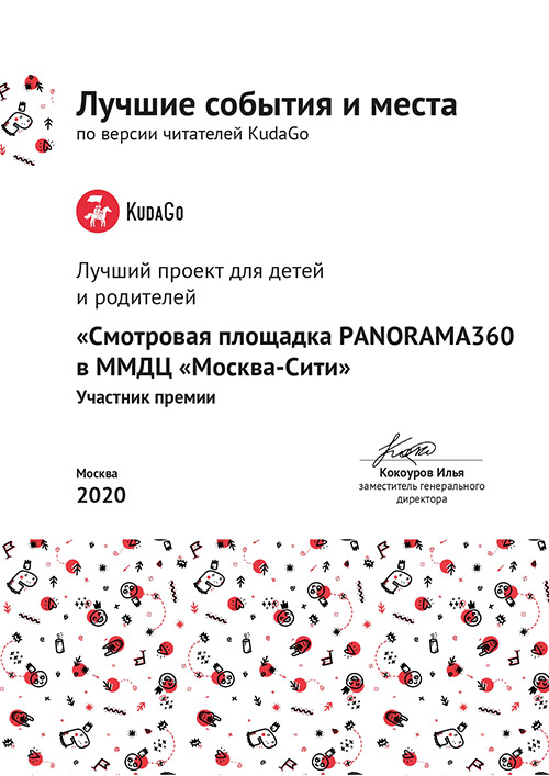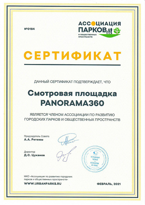 PANORAMA360 на сегодня — это уникальный проект всероссийского масштаба, принимающий более 400 000 человек в год. Смотровая площадка принимает активное участие в социальных проектах, реализуя масштабные акции и мероприятия на городском и федеральном уровнях. Регулярно внедряет в свою работу современные инициативы и укрепляет партнёрские связи с организациями, чья деятельность направлена на культурно-развлекательный досуг.